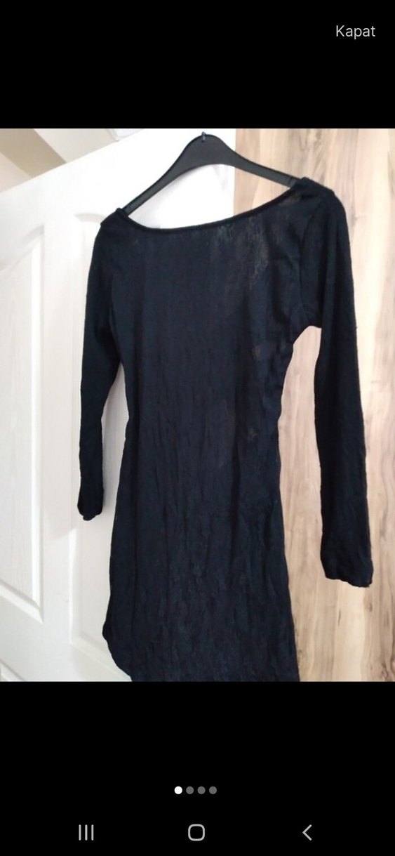 Siyah kumaştan, uzun kollu ve V yakalı, drapeli, normal midi boyda, sade ve gotik tarzda kadın elbise.
