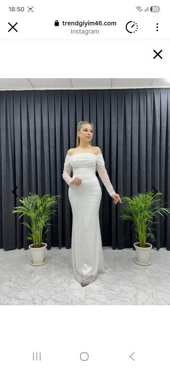 Bu beyaz düğün elbisesi, uzun kollu ve straplez yakası ile modern klasik tarzda, zarif detaylarla şık ve göz alıcıdır. kız kardeşim nikahta giydi sorunsuz temiz çok şık bi elbise kardeşimin boyu 165 kg 55
