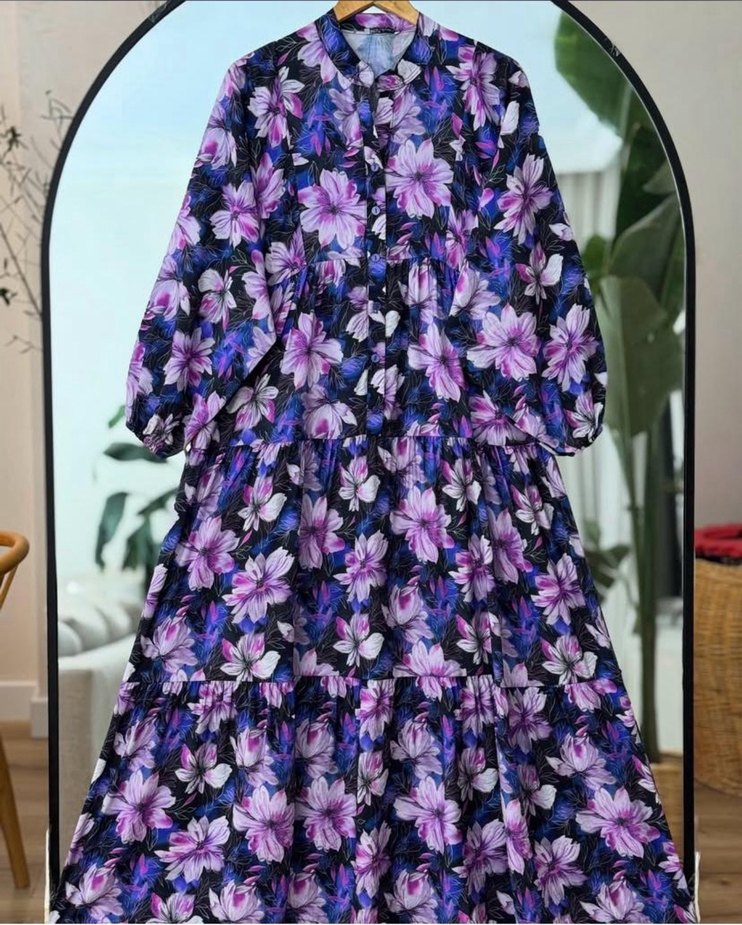 Uzun kollu, yüksek yakalı mor bohem elbise, fırfır detaylı ve çiçek desenlidir. Bol kesimi günlük kullanıma uygundur. KUMAŞI:LİLYUM KUMAŞTIR❤️ BEDEN ARALIĞI:38/50 ELBİSE BOY:1.40 ÇEKME YAPMAZ ÜTÜ İSTEMEZ İSTEDİĞİNİZ BEDENDE İLAN AÇILIR