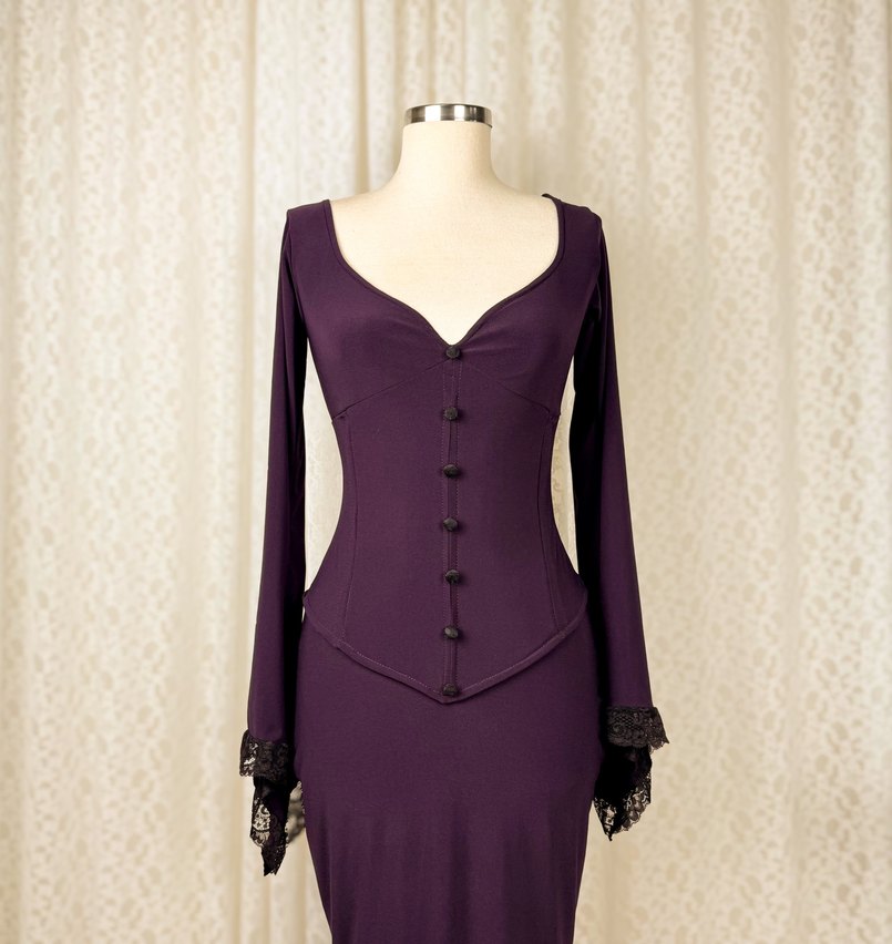 Uzun Kollu Mor Gotik Kadın Abiye Elbise