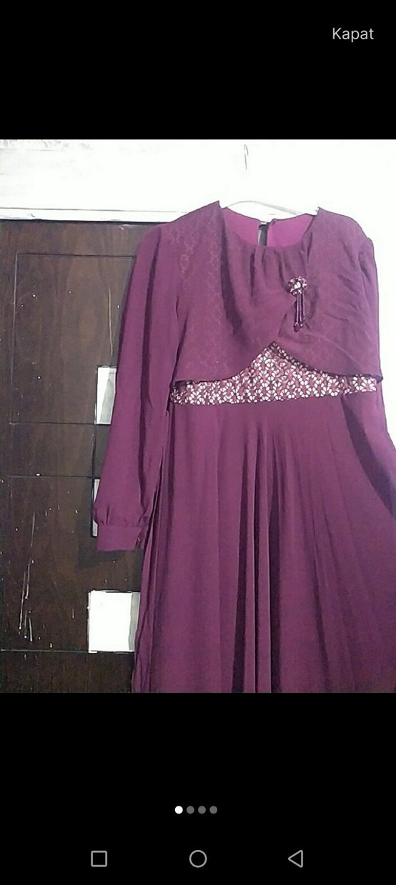 Uzun Kollu Mor İşlemeli Vintage Kadın Elbisesi
