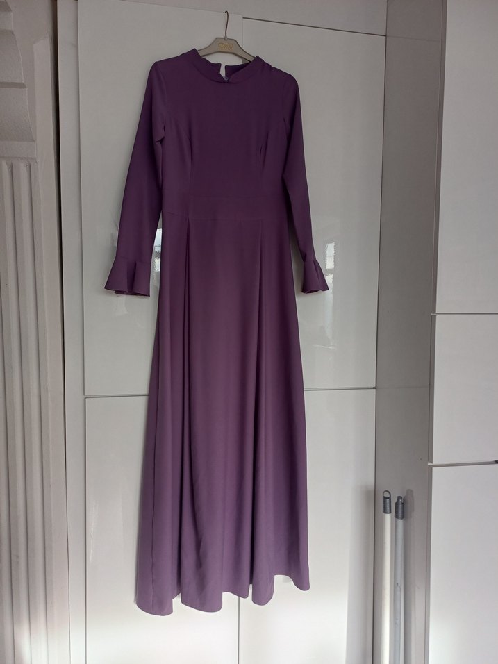 Uzun Kollu Mor Kadın Elbise
