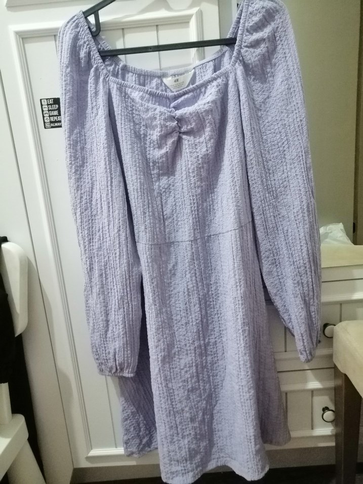 Uzun Kollu Mor Midi Keten Elbise