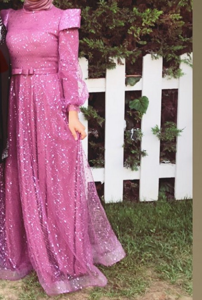 Bu uzun mor abiye elbise, drapeli tasarımı ve batik desenleriyle uyumlu, bele oturan bir kesime sahiptir. Uzun kollu ve tekne yakalıdır, düğünler için uygundur. ✨