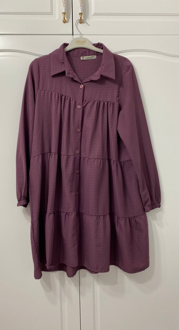Uzun Kollu Mor Piliseli Bohem Tunik