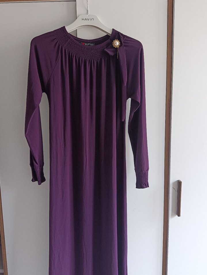 Uzun Kollu Mor Salaş Elbise - Görsel 1