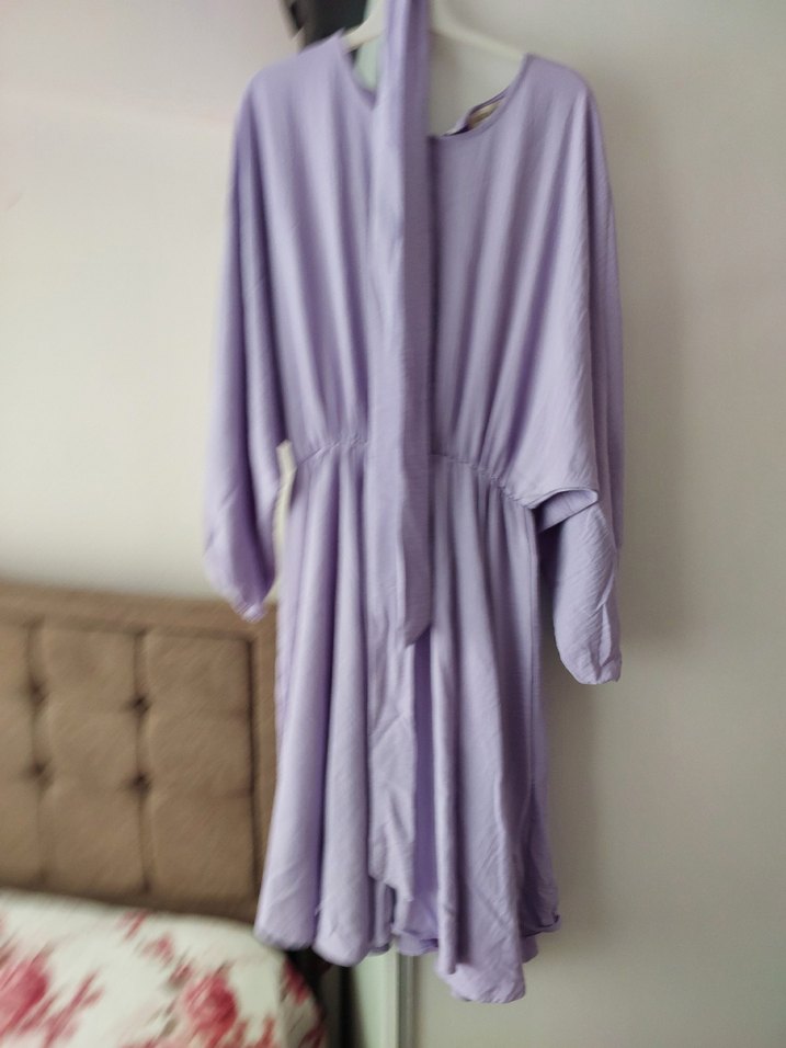 Uzun Kollu Mor Salaş Kadın Tunik Elbise