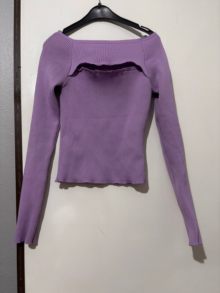 Bu kadın kazağı, uzun kollu ve tek renkli olup, triko örgü yapısında ve mor pastel tonundadır. Günlük ve rahat kullanım için uygundur.