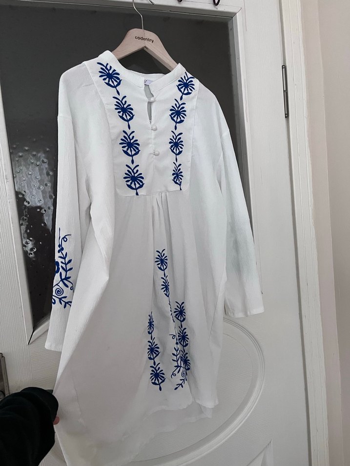 Uzun Kollu Nakışlı Bohem Tunik