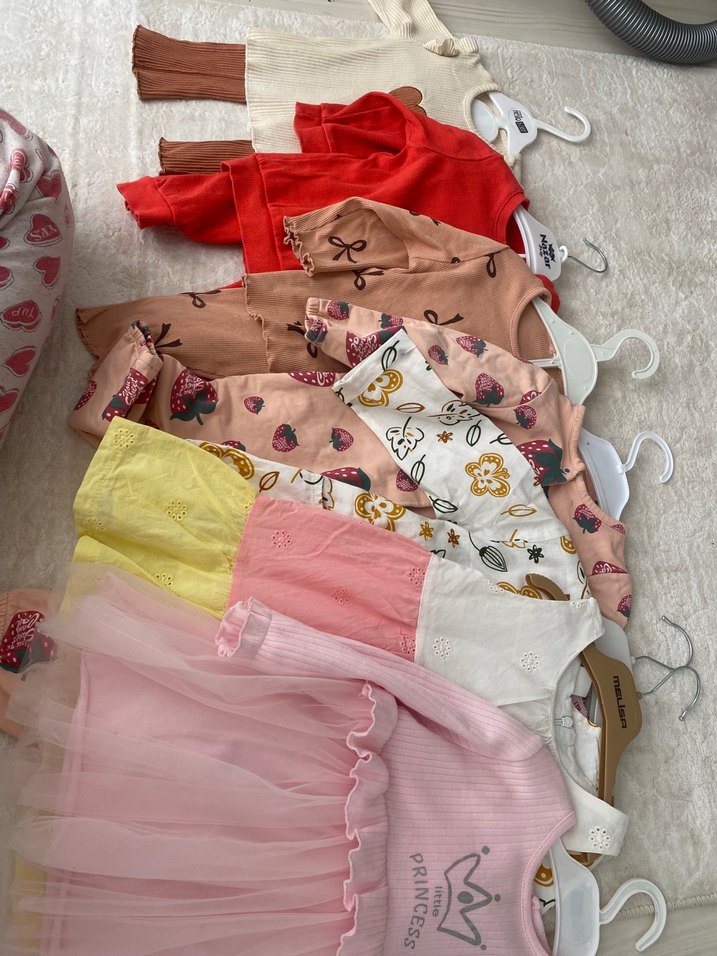 Hepsinin toplam fiyatıdır elbiseler sayılı giyildi.Alt-üst takımlarda temiz kullanıldı.Markaları Ebebek,civil,LBT,Boyner markasıdır.6-12 aylık bebeğe olur.
