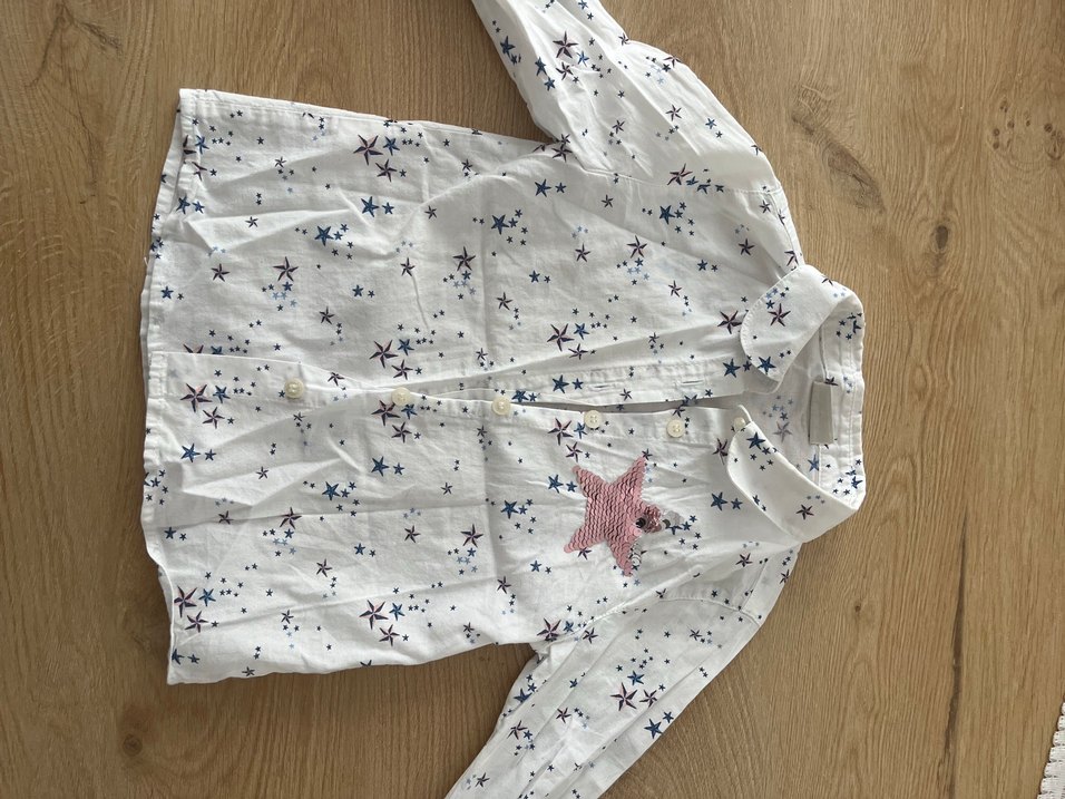 Uzun kollu, beyaz erkek gömleği, nakışlı yıldız desenleri ve çıtçıtlı kapama ile rahat ve şık bir tasarıma sahiptir. ⭐