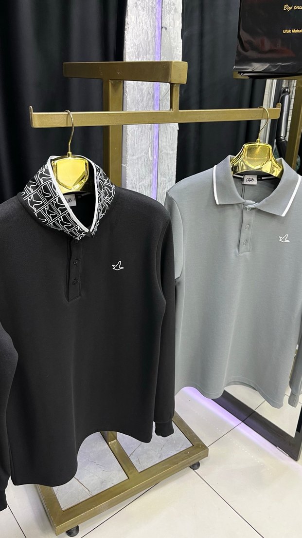 Uzun kollu, yakalı ve nakışlı detaylara sahip erkek polo tişörtleri, rahat kesim ve sokak stili sunar. Gri ve siyah renk seçenekleri mevcuttur.