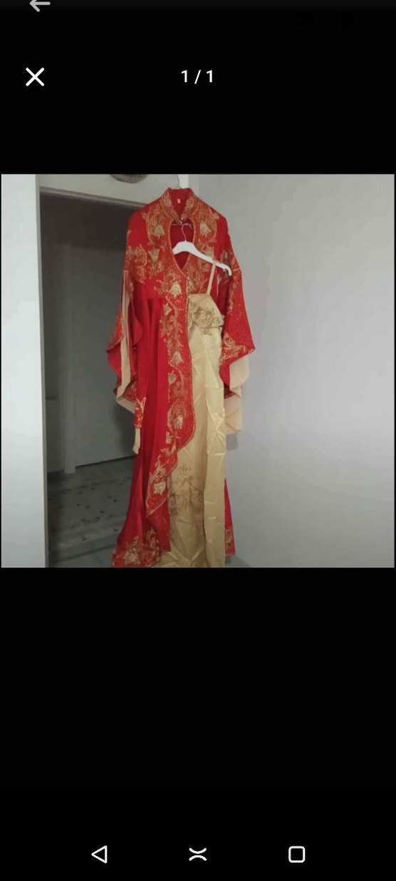 Vintage tarzda, uzun kollu, nakışlı kırmızı bindallı. Straplez yaka ve drapeli, klasik şıklık için uygun.