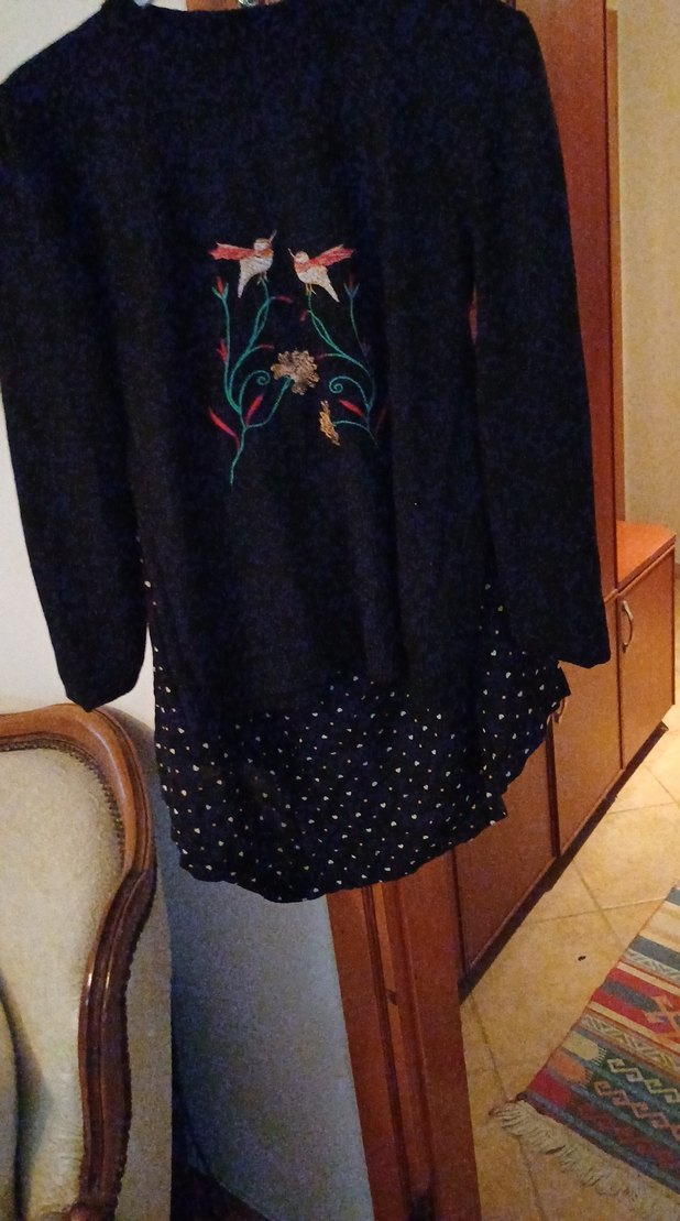 Siyah renkte, uzun kollu ve bol kesim hamile tunik. Önde nakış detayları, yuvarlak yaka ve düğmeli tasarıma sahip. Bohem tarzda, günlük kullanıma uygun.