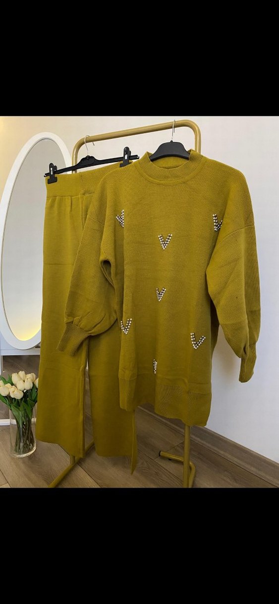 Nakışlı V desenleriyle süslenmiş, uzun kollu ve bol kesim triko kazak. Yuvarlak yaka ve rahat, sokak tarzı şıklık sunar.