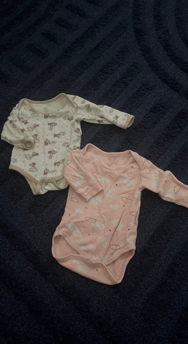 Pastel renklerde, uzun kollu, yuvarlak yakalı ve yumuşak örgü dokulu bebek kız bodysi. İkili fiyat