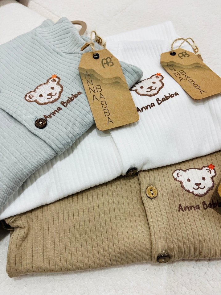 Uzun kollu ve bisiklet yaka olan bu erkek bebek takımı, yumuşak örgü kumaştan olup nakışlı ayıcık desenine sahiptir. Pastel kahverengi, beyaz ve açık mavi renk seçenekleri mevcuttur. 100 pamuk beden sorunuz