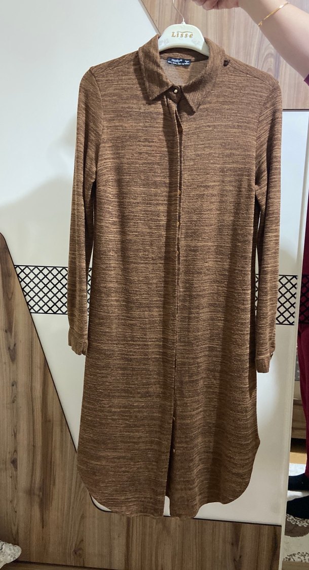 Uzun Kollu Örgü Kahverengi Kadın Tunik