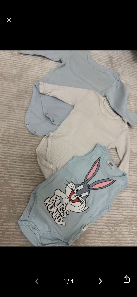 Pamuklu, uzun kollu, bisiklet yaka ve örme dokuda, 3 lü fiyatıdır. Ufak tefek lekeleri var ama leke programında çıkar belki ben uğraşmadım. 6-9 ama 1 yaşına kadar giyildi.