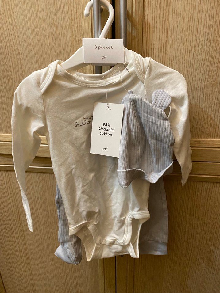 %95 organik pamuktan üretilmiş uzun kollu, bisiklet yaka erkek bebek body 3'lü set. Beyaz ve gri renklerle sade, şık bir sokak stili sunar.