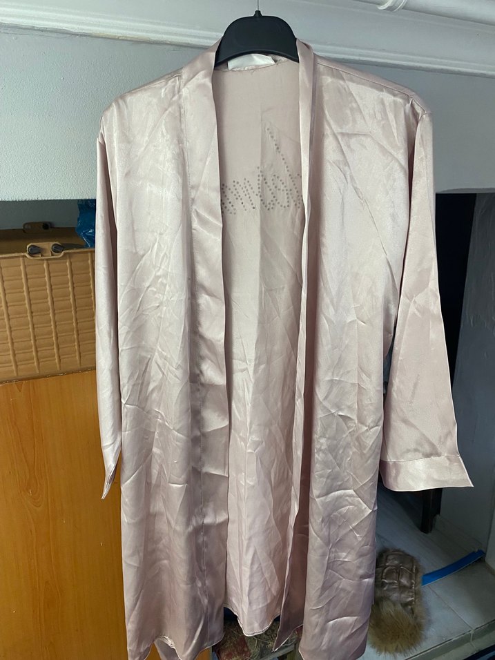 Uzun Kollu Parlak Bej Kadın Sabahlık