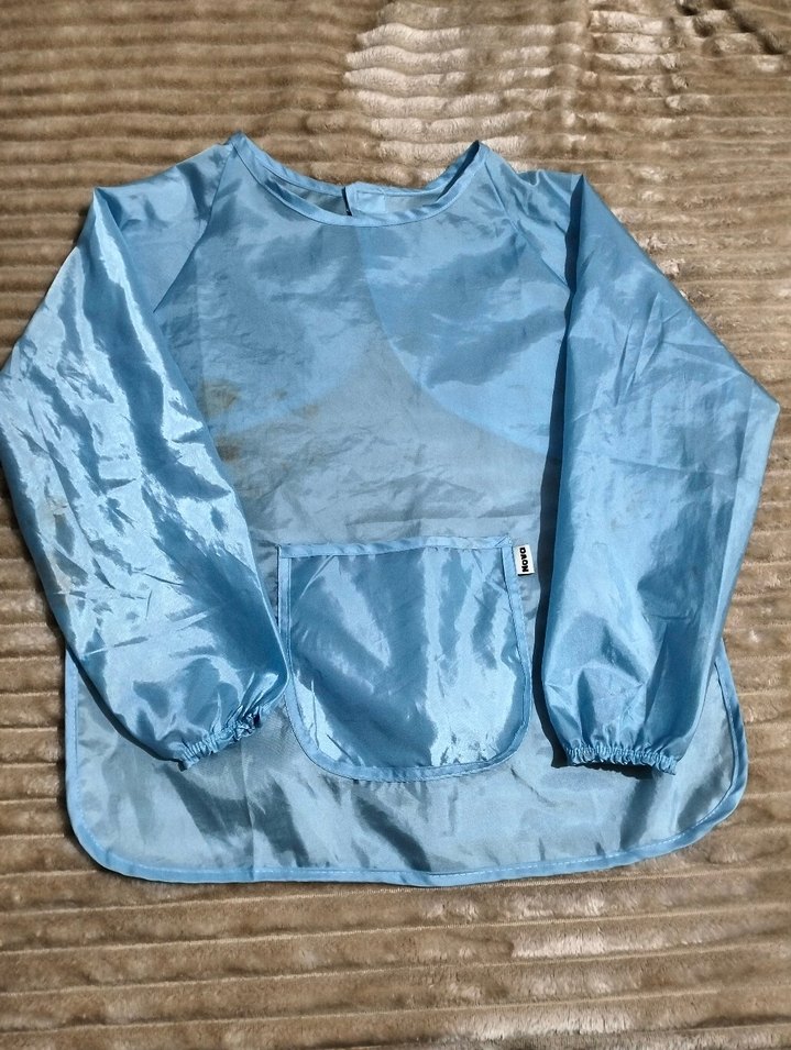 Parlak mavi renkte, uzun kollu ve lastikli manşetlere sahip önlük.Ön kısmında kullanışlı cep bulunmaktadır. Ürün bir yıl kullanıldı, 4-7 yaşa uygun, yıkandı ama kol ve göğüs kısmında boya lekesi var, ense kısmı cırtlı, yırtık vs yok, kullanılır durumda. #kreşboyamaönlüğü #anaokuluboyamaönlüğü #boyamaönlüğü #sugeçirmezönlük