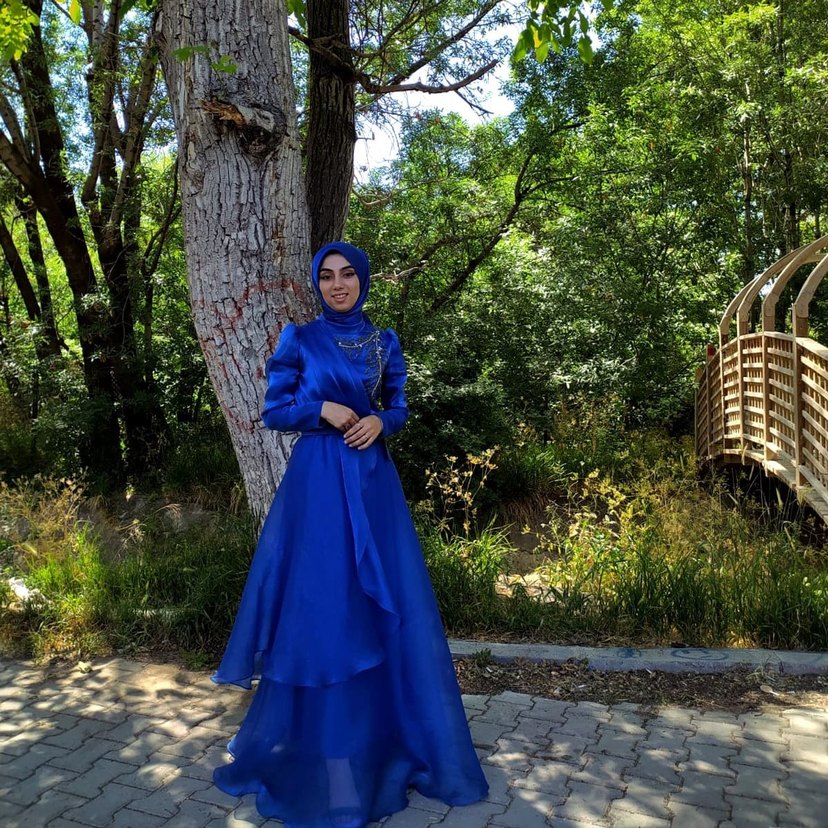 Uzun Kollu Parlak Mavi Tesettür Abiye