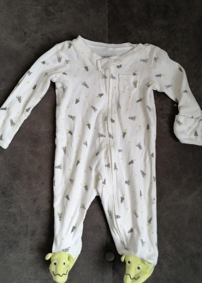 Uzun kollu fermuarlı tulum, kendinden eldivenli.. Yenidoğan
