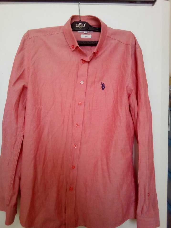 Uzun kollu, yakalı ve düğmeli erkek gömleği. Regular fit ve pastel pembe renkte, günlük sokak stiline uygun, sentetik kumaştan üretilmiştir.
