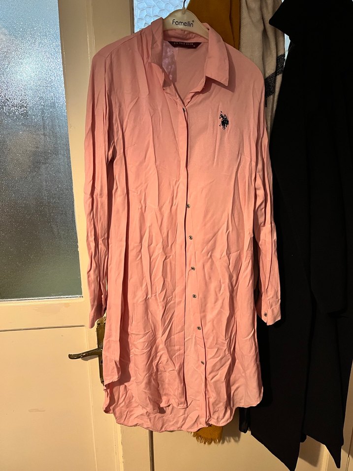 Uzun Kollu Pembe Kadın Gömlek