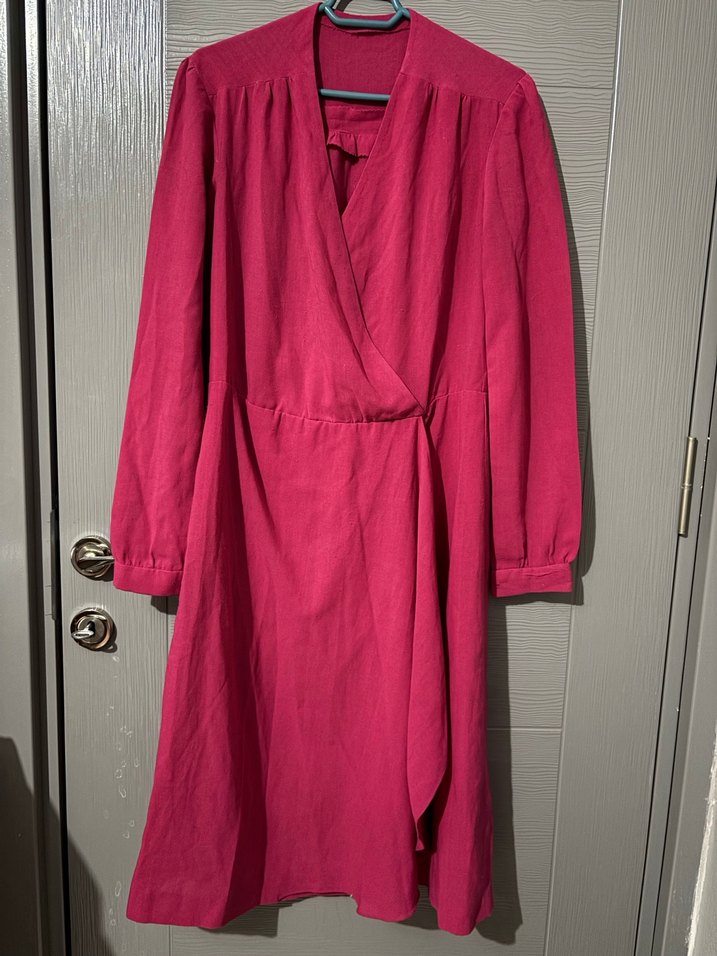 Uzun Kollu Pembe Kadın Uzun Elbise