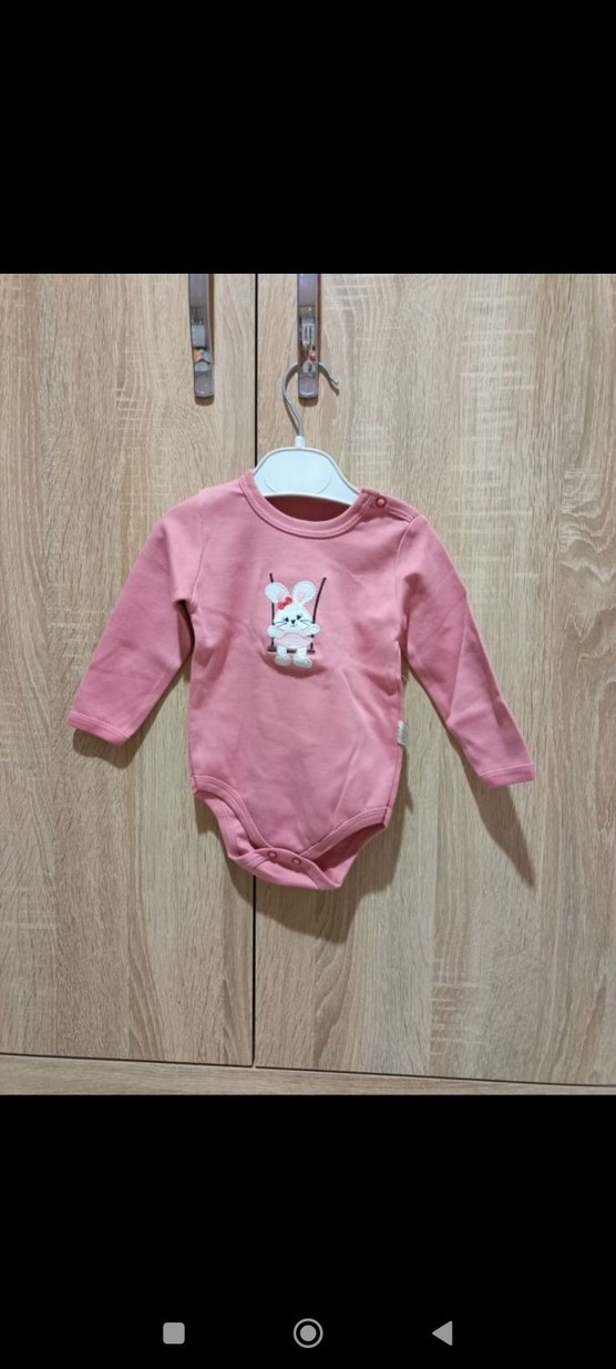 Uzun kollu, yuvarlak yakalı ve örme kumaştan yapılmış pembe kız bebek body. Ön kısmında sevimli baskı deseni bulunur. Pastel renk tonundadır. kız çocuk uzun kollu zıbın body 1 kez giyildi kusuru yok marka temsili #çocukbody #kızçocukzıbın