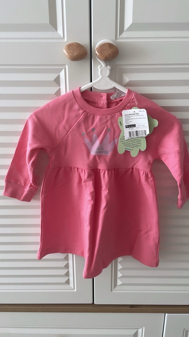 Uzun Kollu Pembe Kız Çocuk Elbise