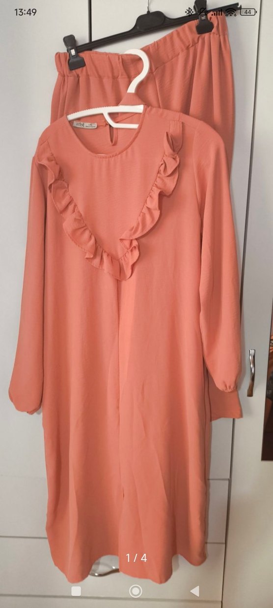 Uzun Kollu Pembe Salaş ikili Tunik