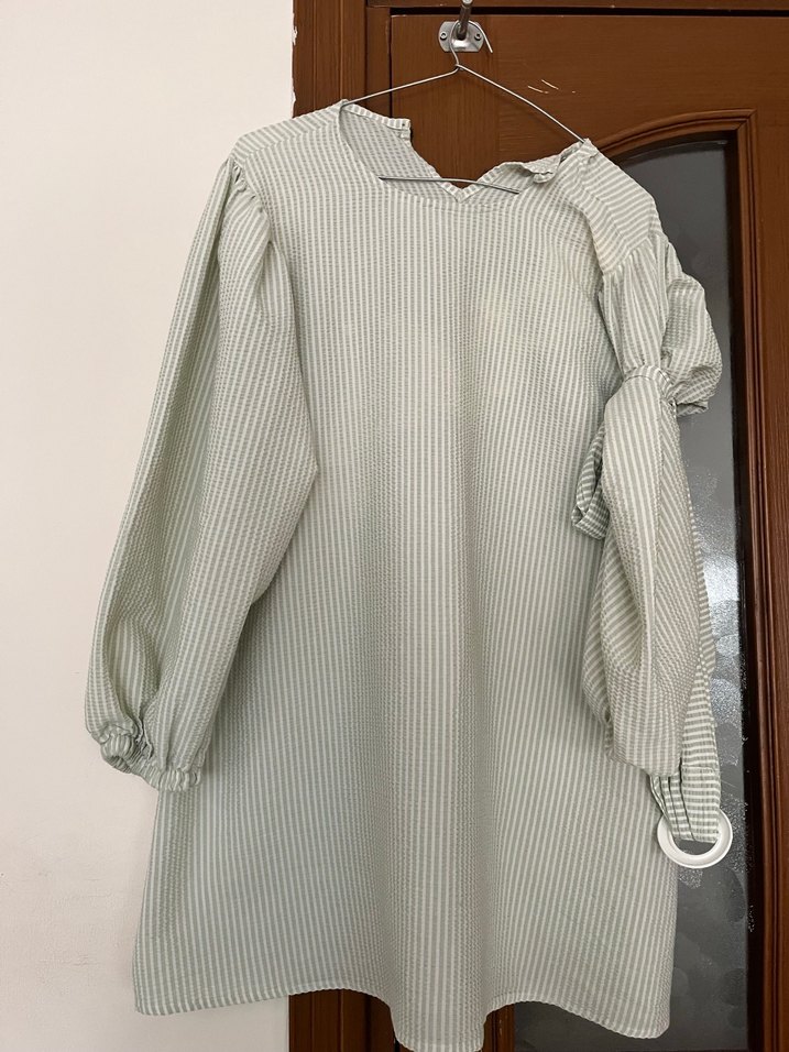 Uzun kollu, bej keten tunik, bol kesim ve tekne yaka ile pilili detaylara sahip, günlük Paris tarzı için uygun. 36-38-40 uyumlu tunik kusursuz belinden bağlamalı kemeri var