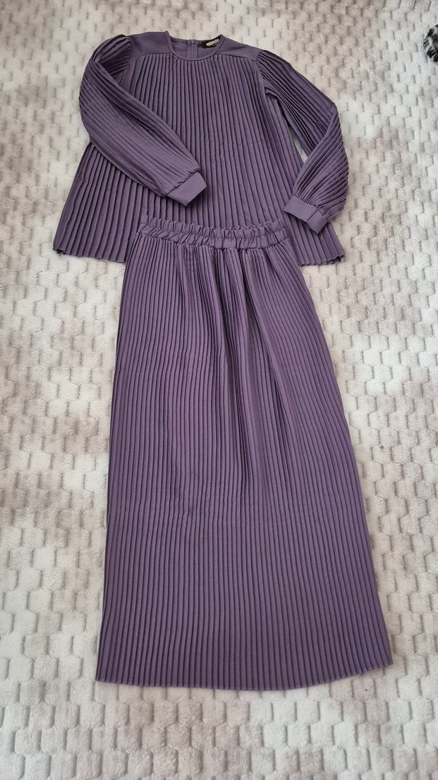 Mor renkte, pilili sentetik kumaştan yapılmış uzun kollu, tek renk ve normal kesim kadın elbisesi. Günlük kullanım için uygundur. mor piliseli kadın trendyolmilla ürünü sıfır hiç giyilmedi