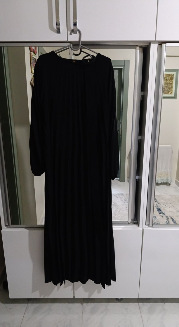 Uzun Kollu Piliseli Siyah Uzun Elbise