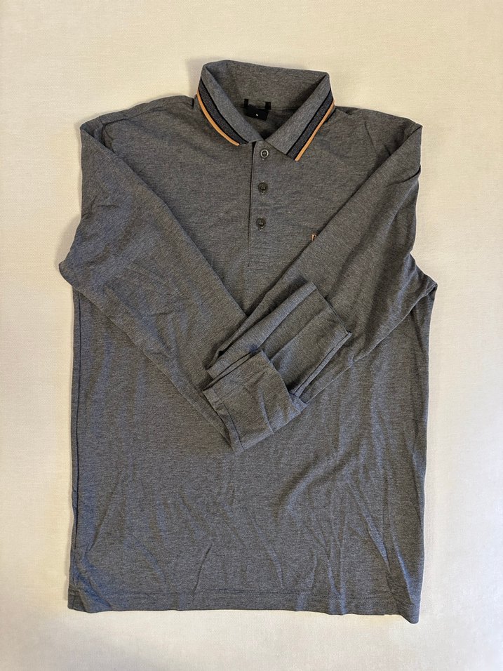 Erkekler için uzun kollu gri polo tişört, düğmeli yakaya sahip, rahat kalıp ve yumuşak sentetik kumaştan üretilmiştir, günlük sokak stili için uygundur. Ürünleri bizzat yurtdışı outletten alıyorum kesinlikle orijinaldir.