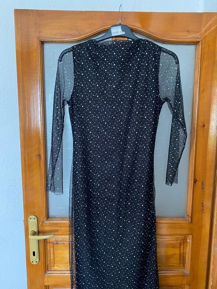 Uzun Kollu Puantiyeli Siyah Elbise