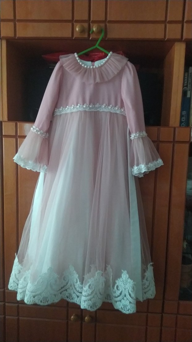 Uzun Kollu Pudra Kız Çocuk abiye Elbise