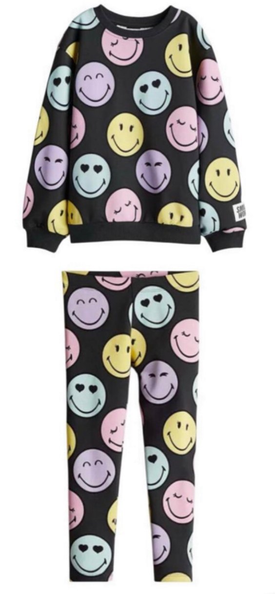 Uzun kollu, renkli tie-dye gülen yüz baskılı kız çocuk takımı, yumuşak ve rahat kumaştan üretilmiştir. Orjinal marka çok iyi fiyat