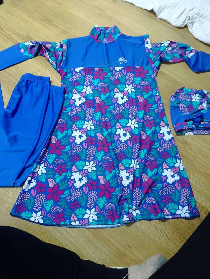 Renkli uzun kollu, bol kesim ve drapeli bohem tarzı mayo. Canlı çiçek desenleri ve uyumlu pantolon ile şapka içerir.