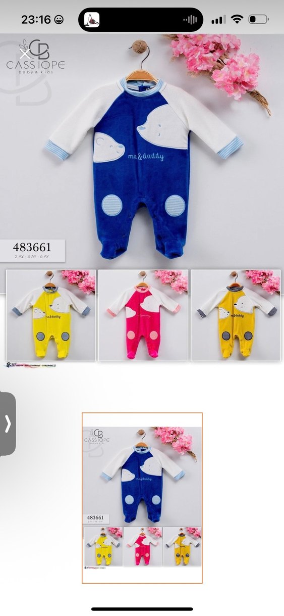 Yumuşak ve sıcak kumaştan, uzun kollu, renkli baskılı bebek tulumu. Kadife 5 aya kadar uygun