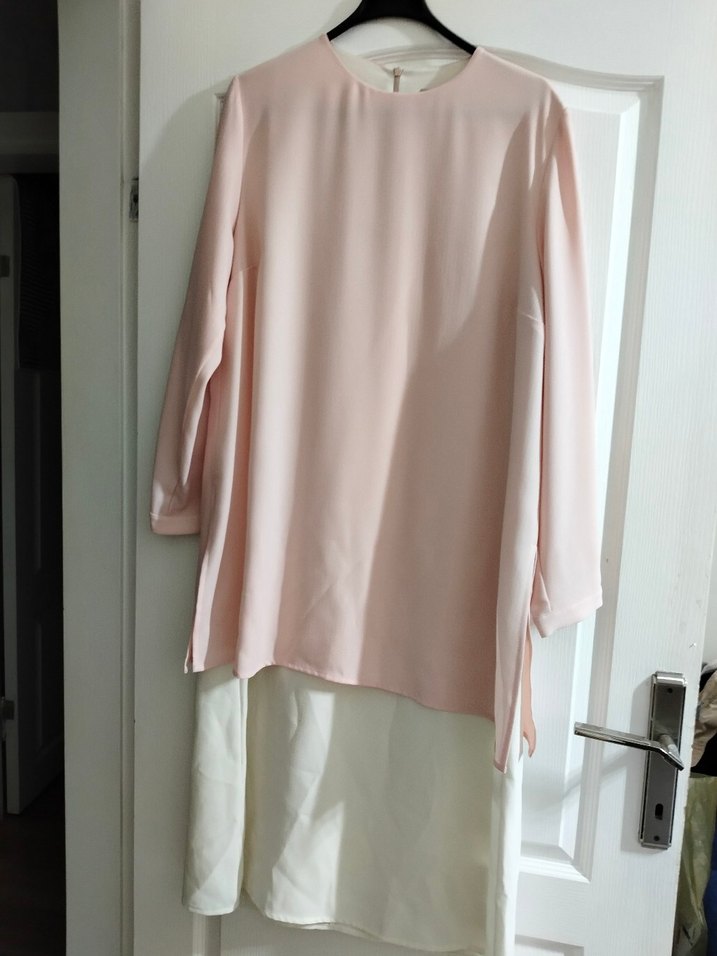 Bu kadın tunik, uzun kollu ve salaş kesimdir. İpekimsi kumaştan yapılmış, pastel bej renkte, yuvarlak yakalı ve minimalist normcore tarzındadır. Günlük kullanıma uygundur. ✨