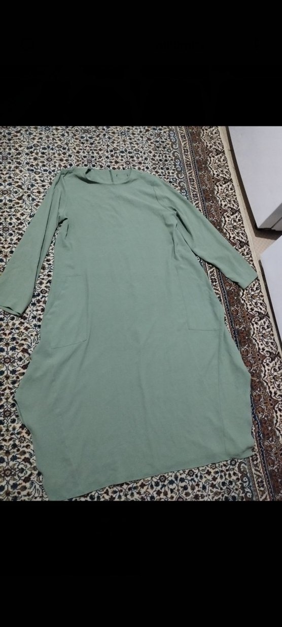 Su yeşili uzun tunik ayrobin kumaştan çok şık bı ürün kullanıma engel sıkıntısi yoktur temiz kullanıldı.ebatlari resimlerde mevcut