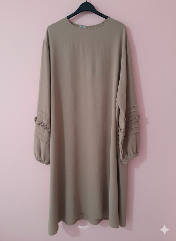 uzun kollu, salaş kesim ve yuvarlak yakalı tunik. Kollarda drapeli detaylar bulunur. bir iki defa giyildi herhangi bir sorunu yoktur.