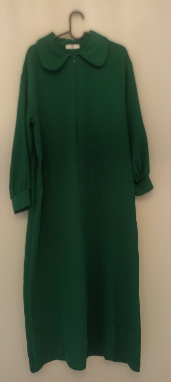 Uzun kollu, salaş kesim yeşil elbise, yumuşak ve sıcak kumaştan, drapeli tasarıma sahiptir ve minimalist sokak tarzına uygundur. bir kere giyildi yeni temiz. Boyunuza gore tunik veya elbise olarak kullanilir. yanlari cepli gunluk rahat