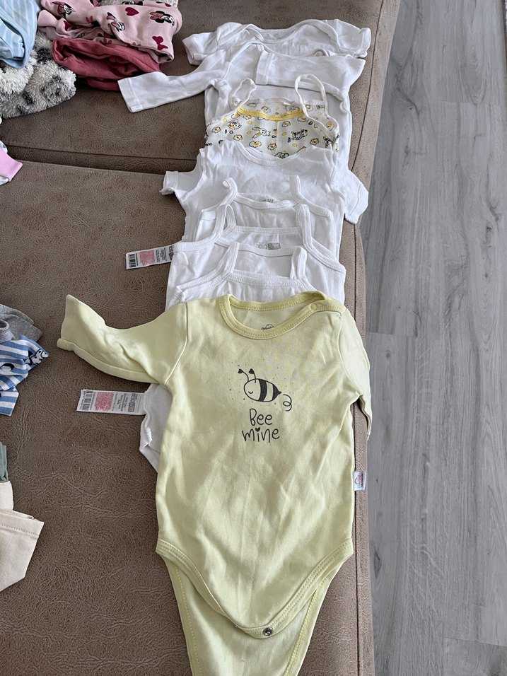 Pastel sarı renkli, uzun kollu, yuvarlak yakalı bebek body. Üzerinde arı baskısı ve "Bee Mine" yazısı bulunur. Düğmeli kapanışlı.