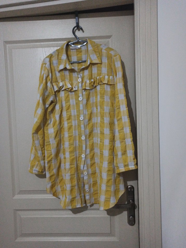 Uzun Kollu Sarı Düğmeli Kadın Gömlek