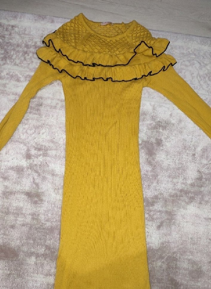 Fıtilli sarı örme kumaştan elbise